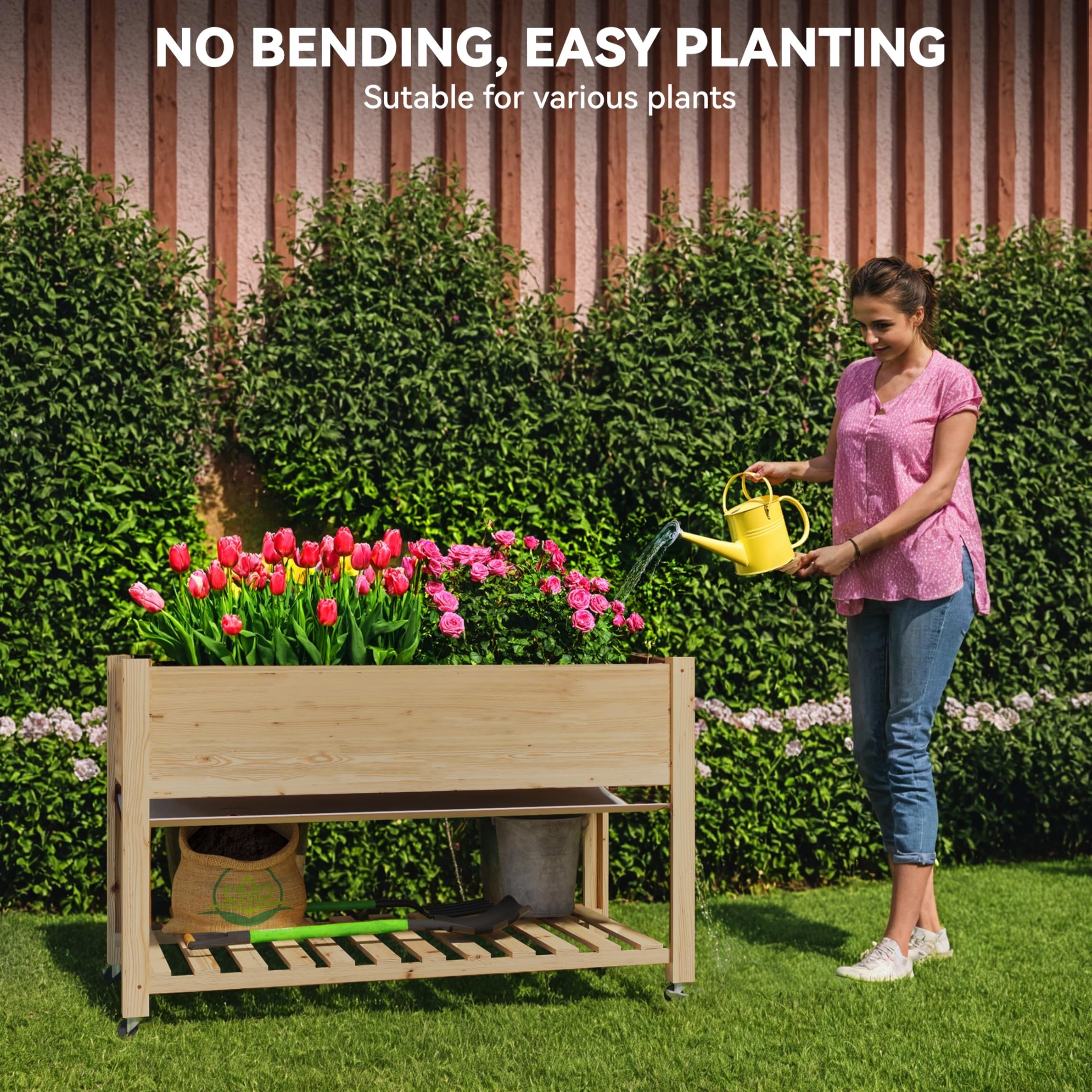 - Save your knees. Standing at approximately 30-32 inches (approx. 76-81 cm) high, this planter brings the garden to you. It is the perfect solution for elderly gardeners or anyone with back issues, making weeding and watering a pleasure rather than a chore.